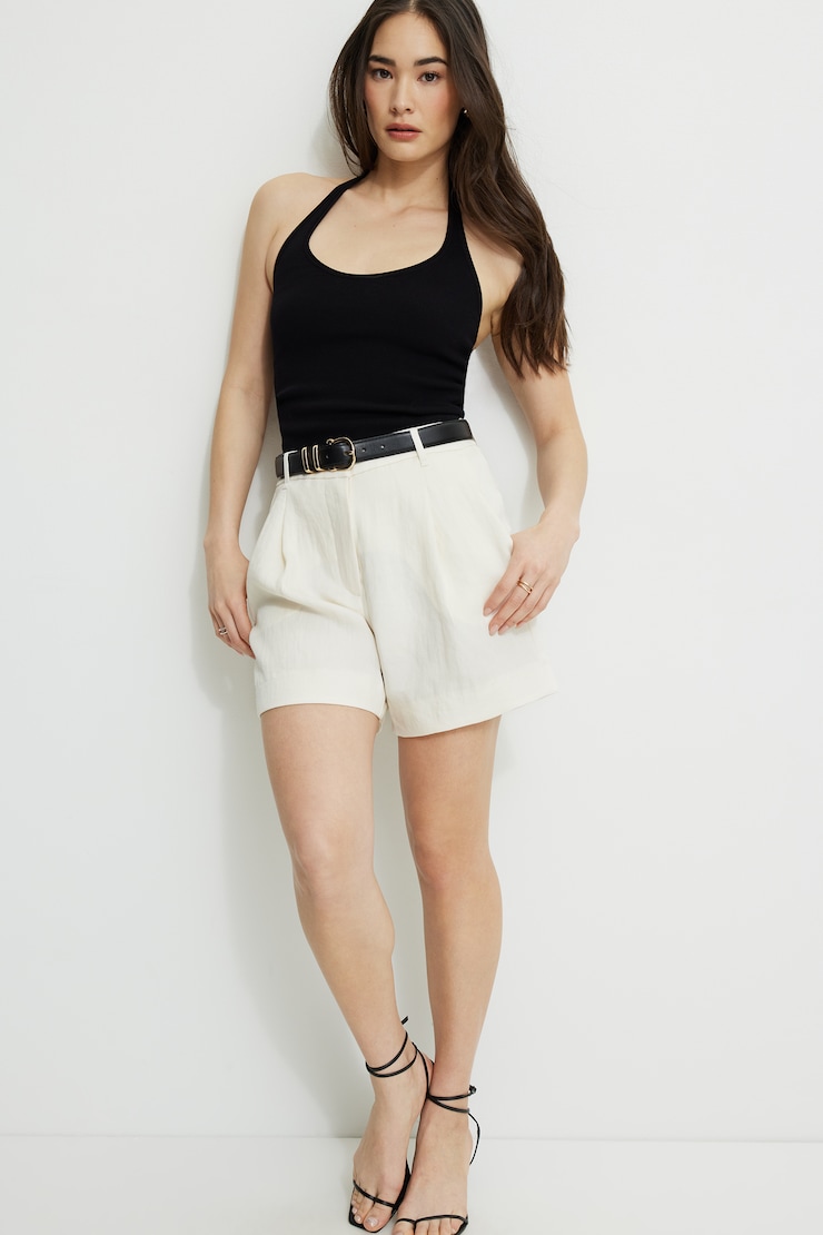 Pleated Mid-Thigh Shorts